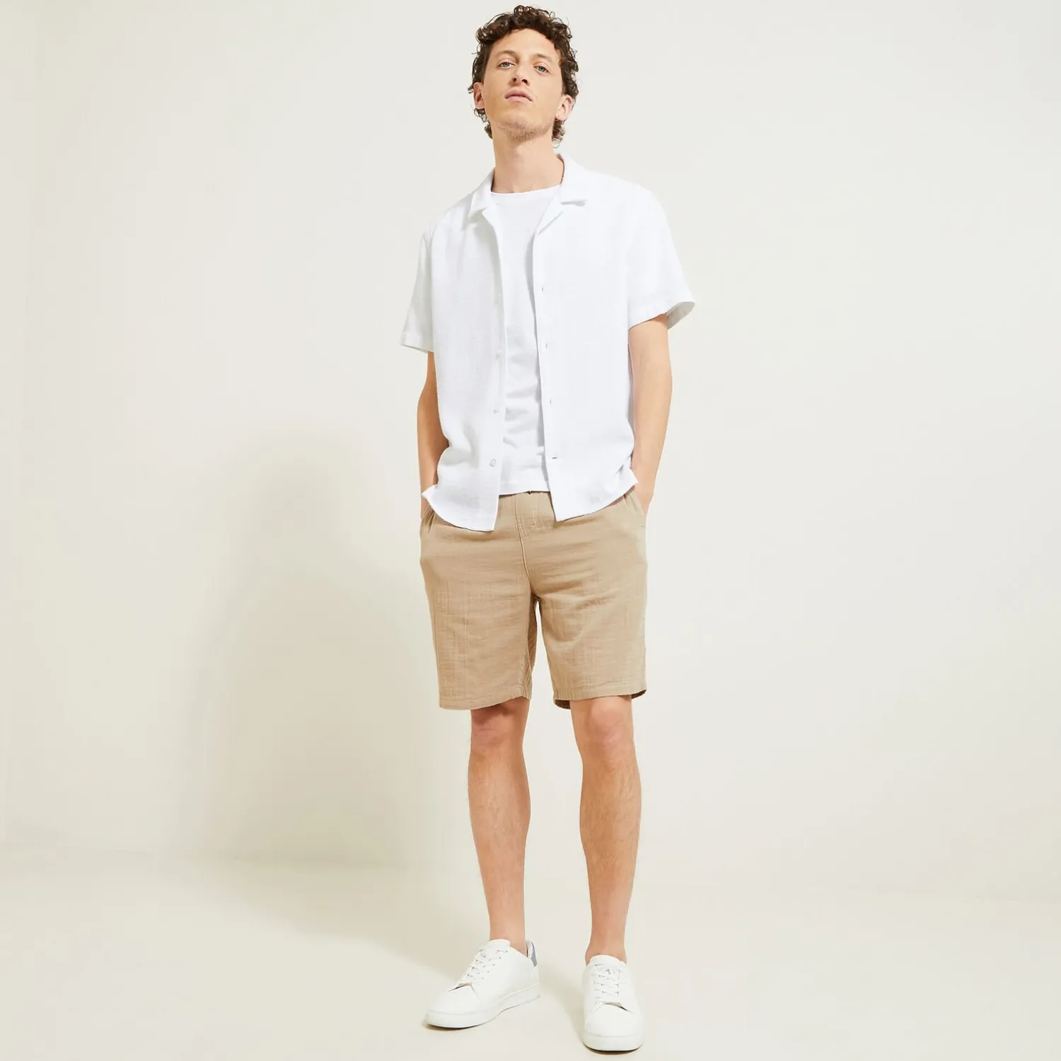 Ce bermuda en gaze de coton, très léger, respirant et confortable est une pièce maîtresse du vestiaire estival.