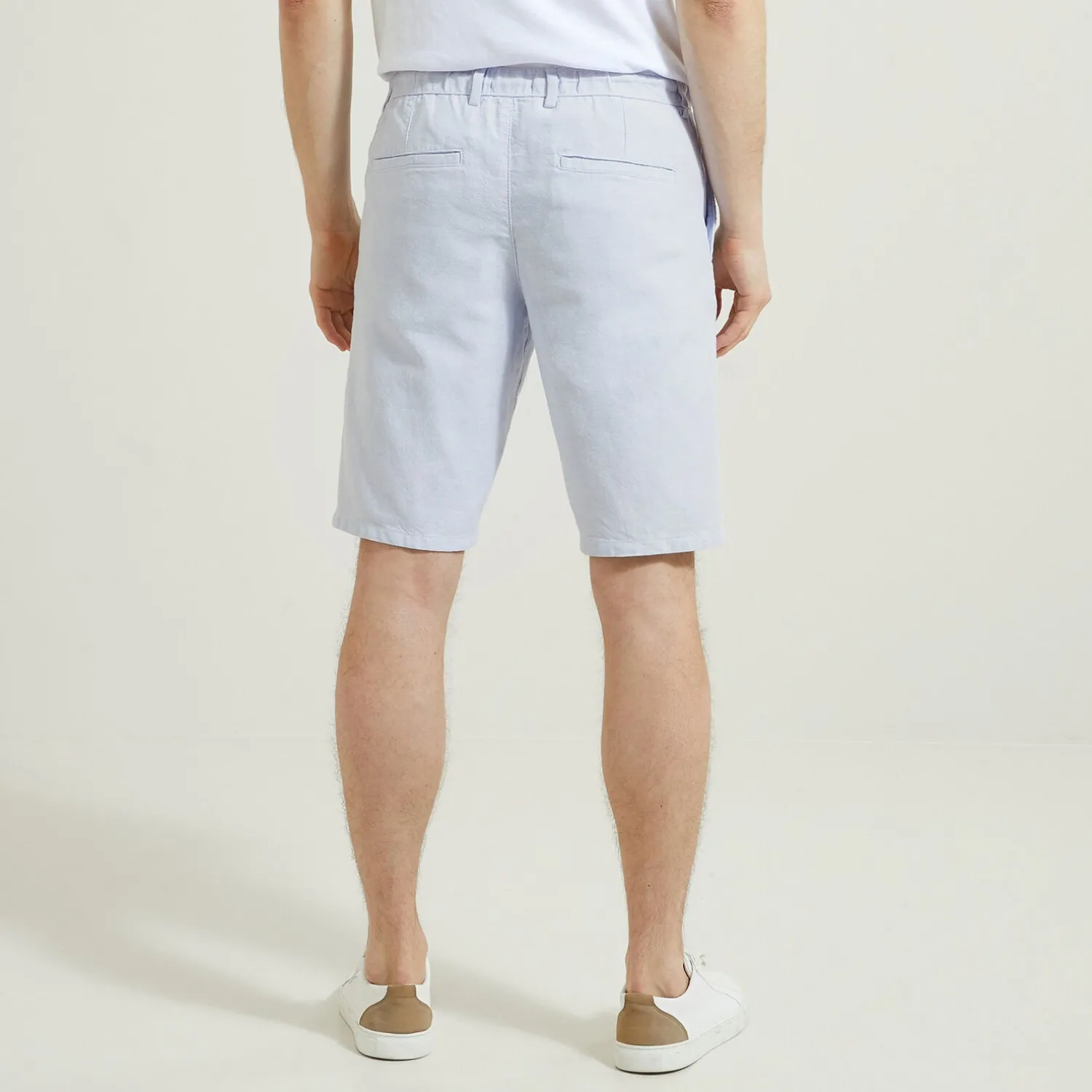 Ce bermuda en coton et lin uni apporte douceur et confort au quotidien. Sa taille élastiquée en fait une pièce incontournable, à mixer à toutes vos tenues.