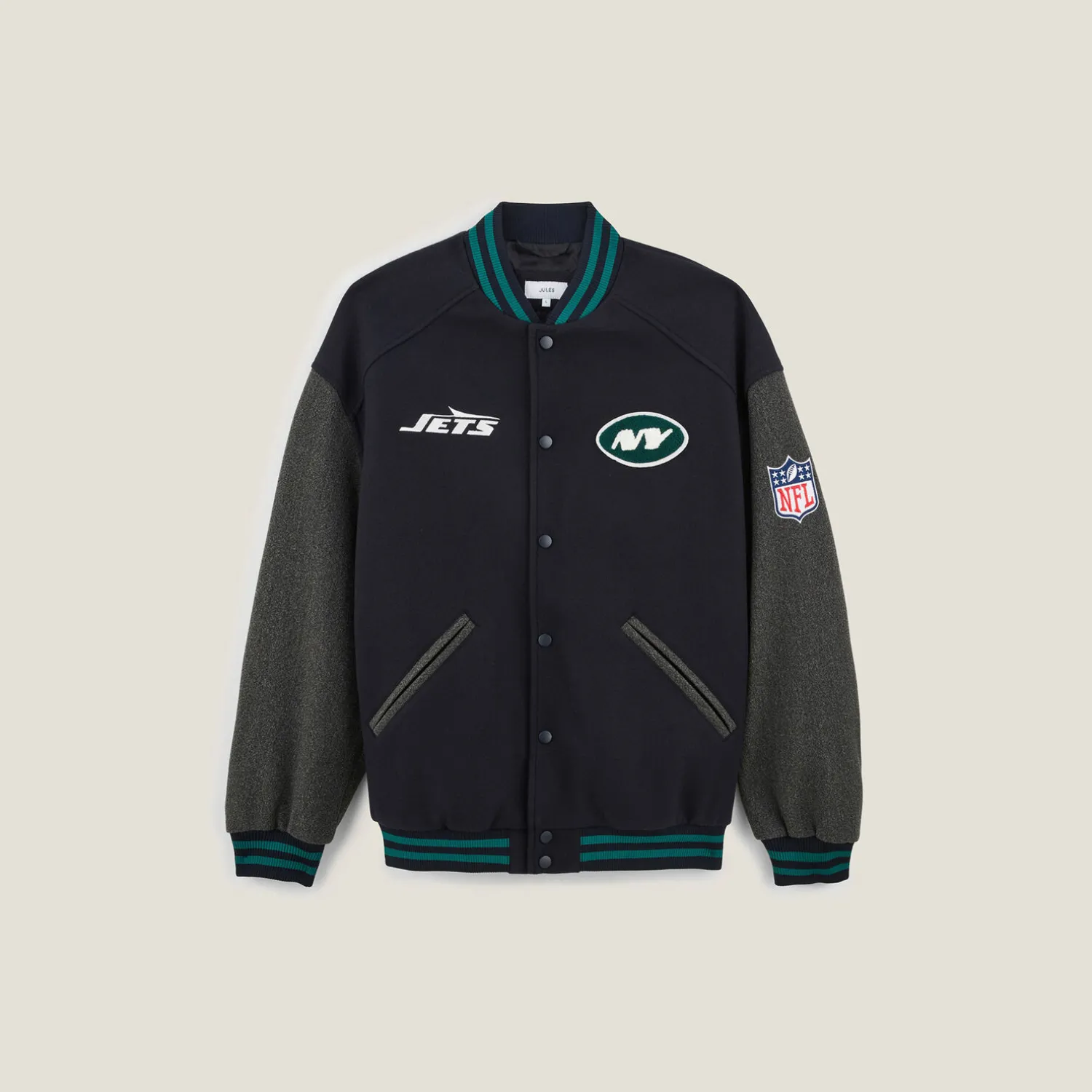 Affichez votre soutien aux Jets avec ce blouson boutonné sous licence NFL. Ce bomber affiche un look décontracté avec ses manches contrastées et ses finitions bord-côtes.