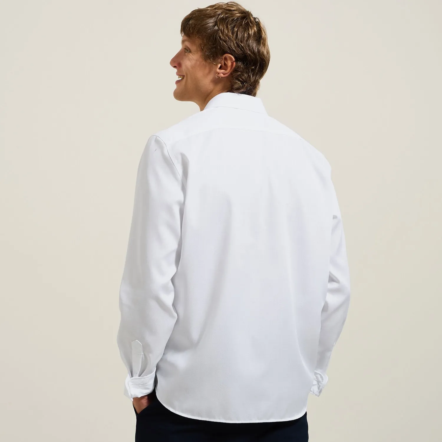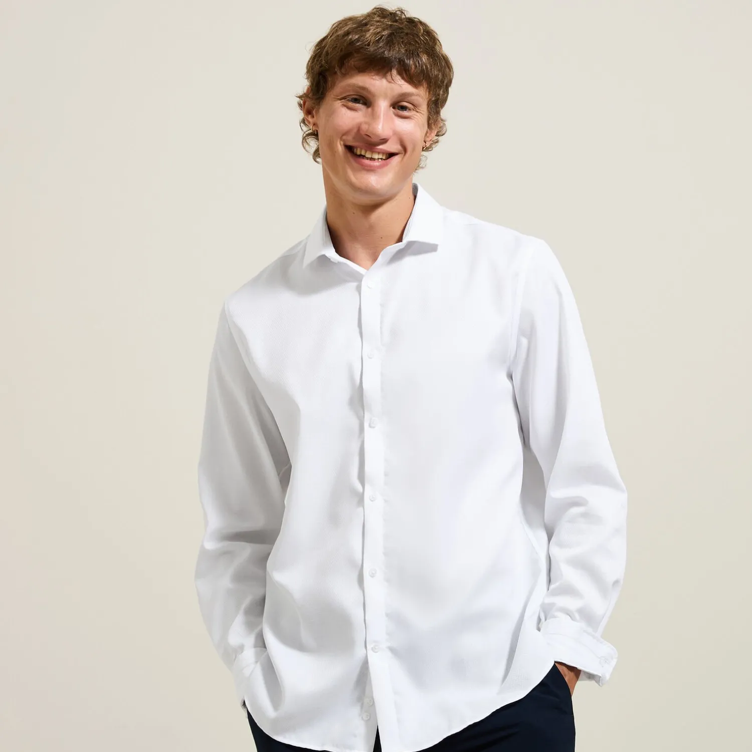Cette chemise à manches longues en coton, avec motifs en jacquard, s’adapte à toute morphologie et à toutes les situations : Look sportswear décontracté ou urbain plus habillé.