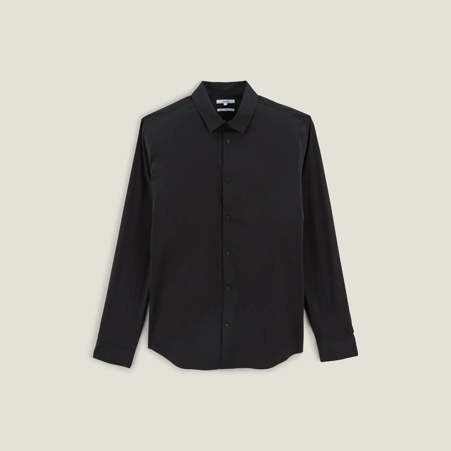Cette chemise, unie à manches longues, s’associe aisément avec un chino ou un pantalon de costume.Coupe slim, près du…