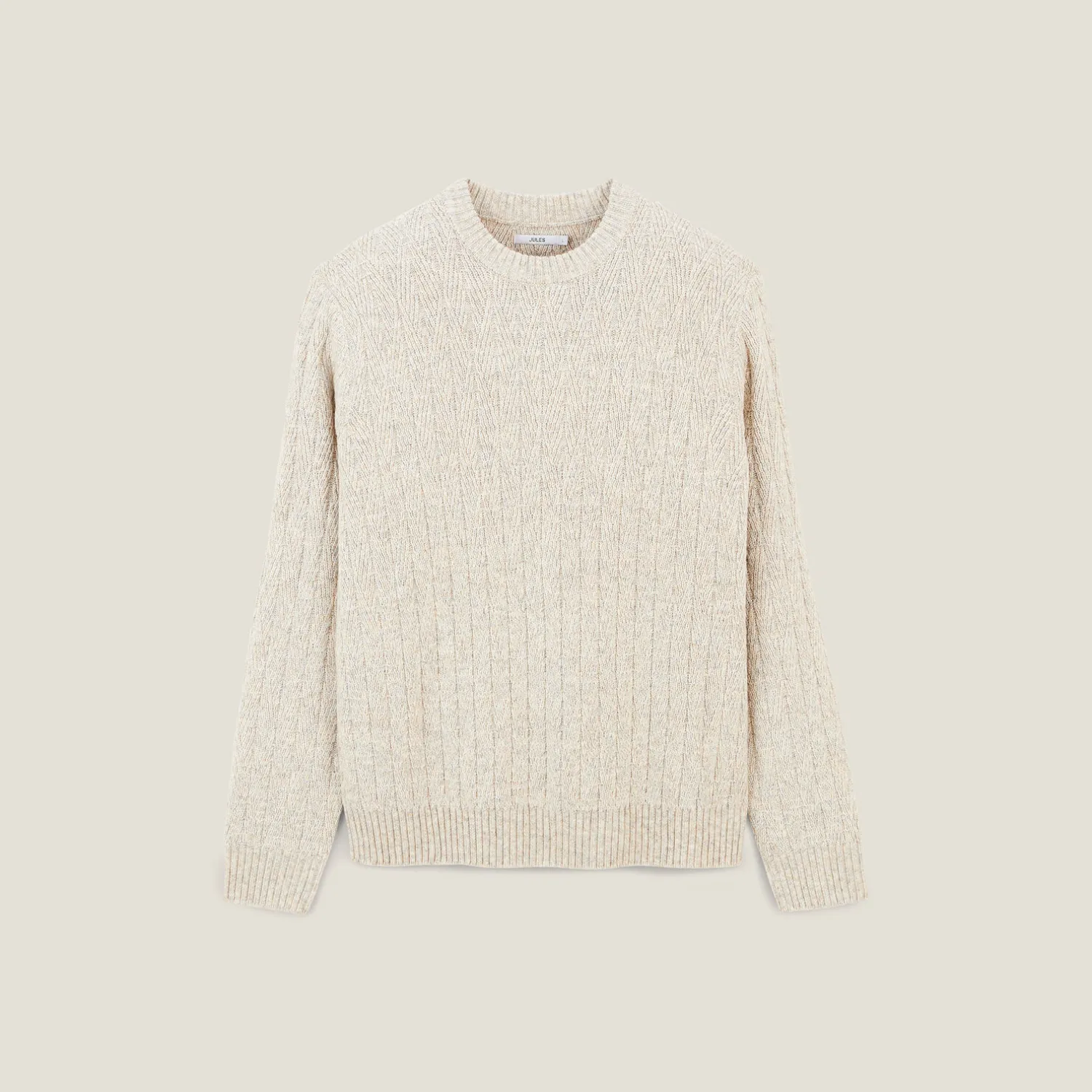 Ce pull col rond torsadé en maille fantaisie est un indispensable du vestiaire masculin. Sa coupe regular et ses détails lui donnent un look moderne et facile à porter au quotidien.