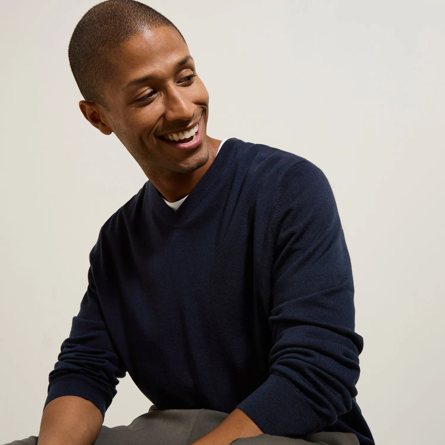 Ce pull en laine mérinos est un incontournable du vestiaire masculin. Sa maille douce et fine apporte du confort au quotidien.