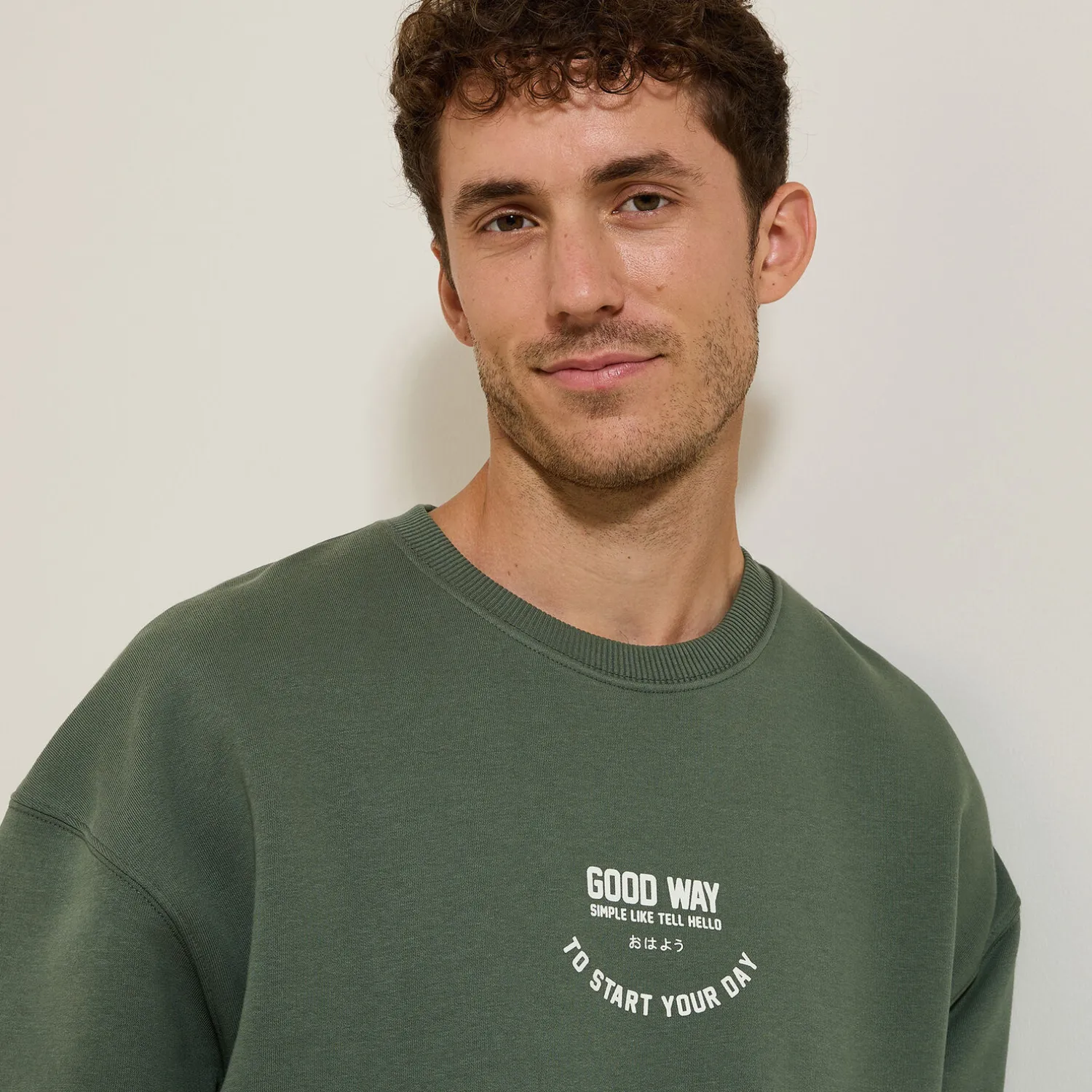Ce sweat col rond affiche un imprimé original aussi bien sur le devant que dans le dos pour un look qui ne passe pas inaperçu.
