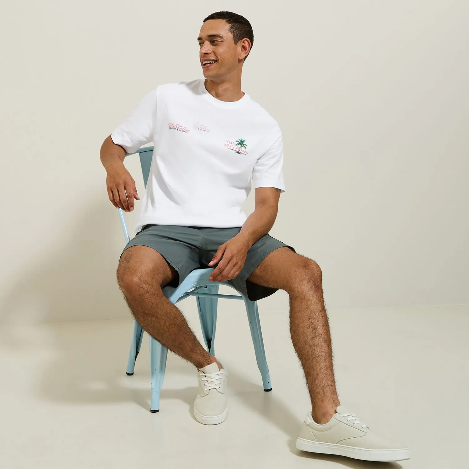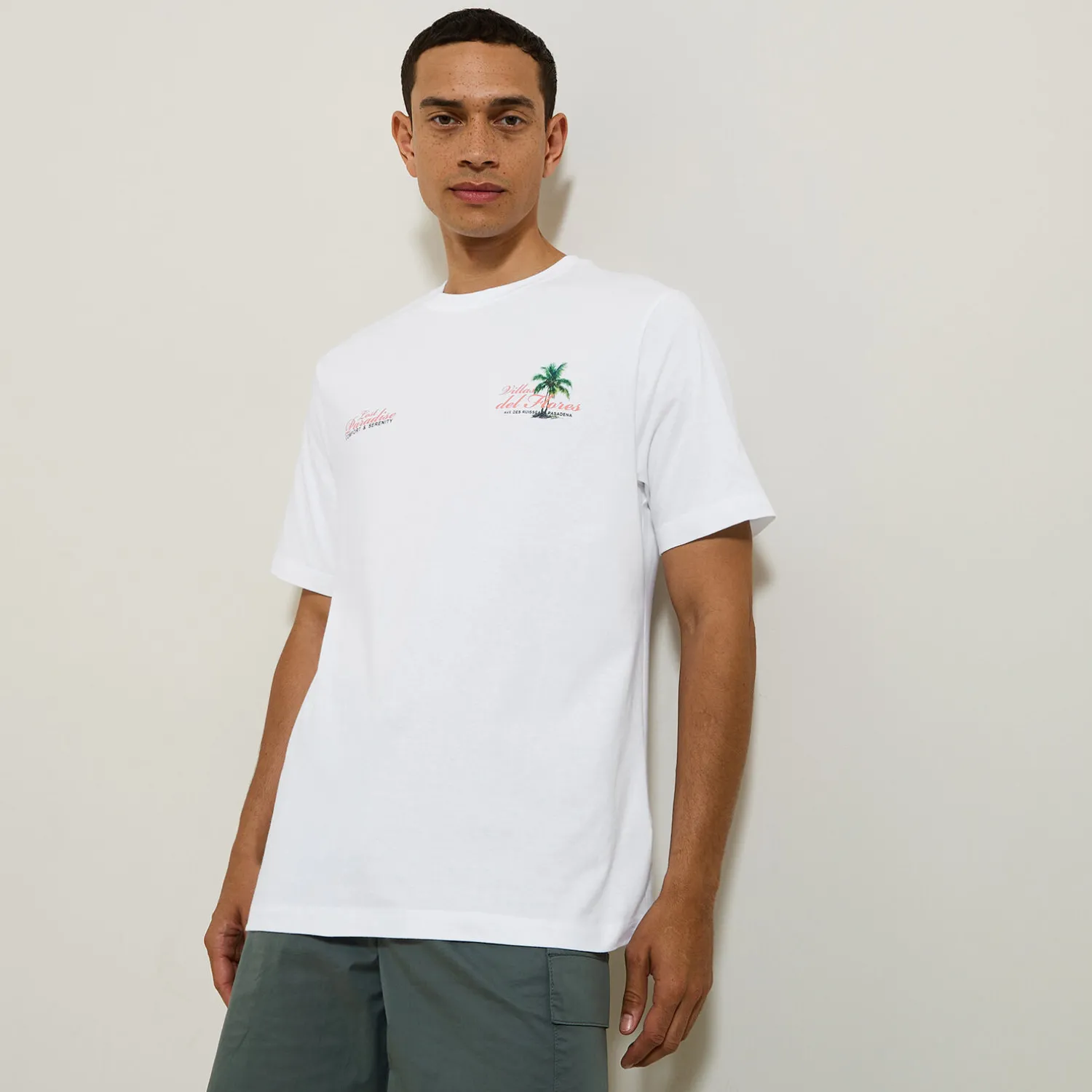 Ce t-shirt droit, avec des imprimés devant et au dos, offre un porté cool et décontracté en toute occasion. Il est confortable et facile d’entretien.