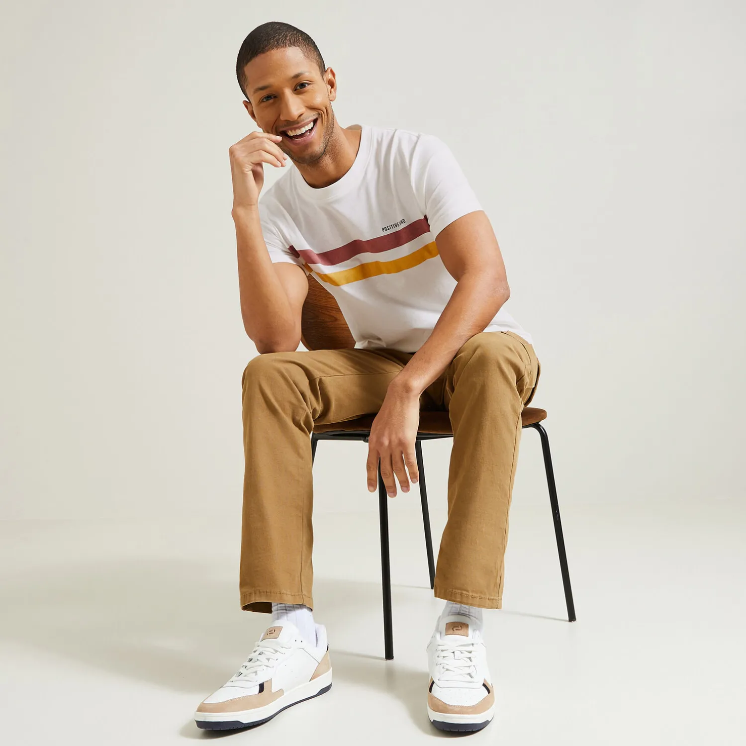 Ce tee-shirt en coton se porte en mode casual avec un jean ou un chino, en toutes circonstances.