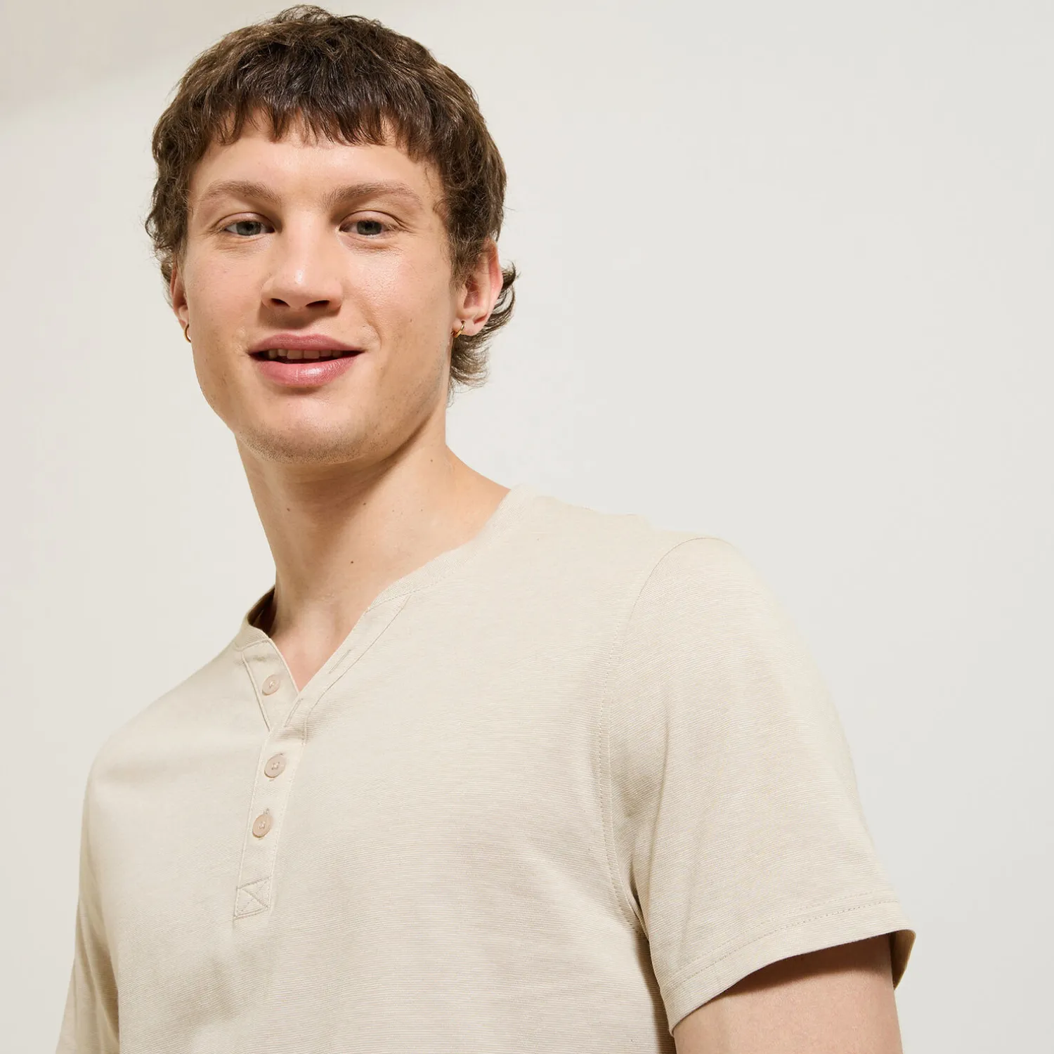Véritable basique du vestiaire masculin, ce t-shirt à manches courtes micro rayé convient à tous les styles. Sa matière est durable et solide au fil du temps.