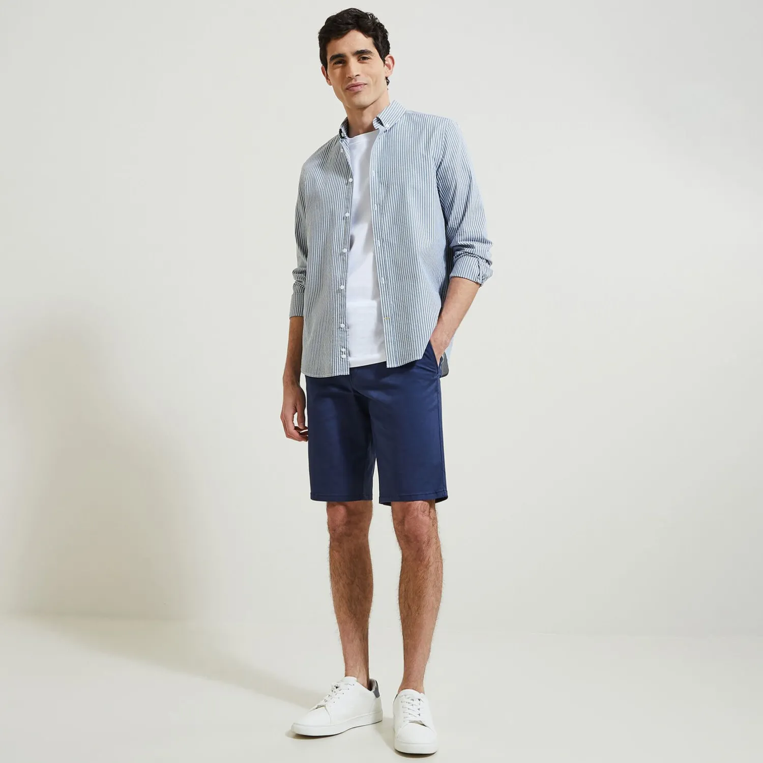 Le bermuda chino uni fait incontestablement partie des must du vestiaire masculin ! À porter à volonté avec un t-shirt, un polo, une chemise… Avec tout ce que vous voulez.