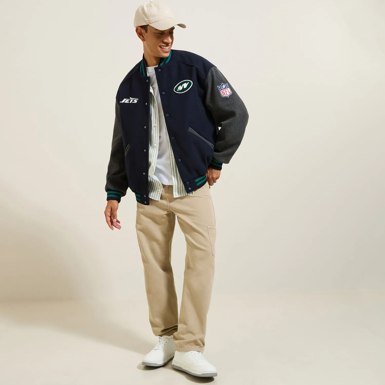 Affichez votre soutien aux Jets avec ce blouson boutonné sous licence NFL. Ce bomber affiche un look décontracté avec ses manches contrastées et ses finitions bord-côtes.