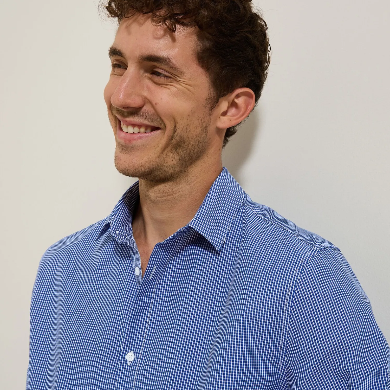 Cette chemise en coton à petits carreaux est une pièce indispensable dans le dressing masculin ! Elle s’accorde parfaitement avec un pantalon chino ou un jean.