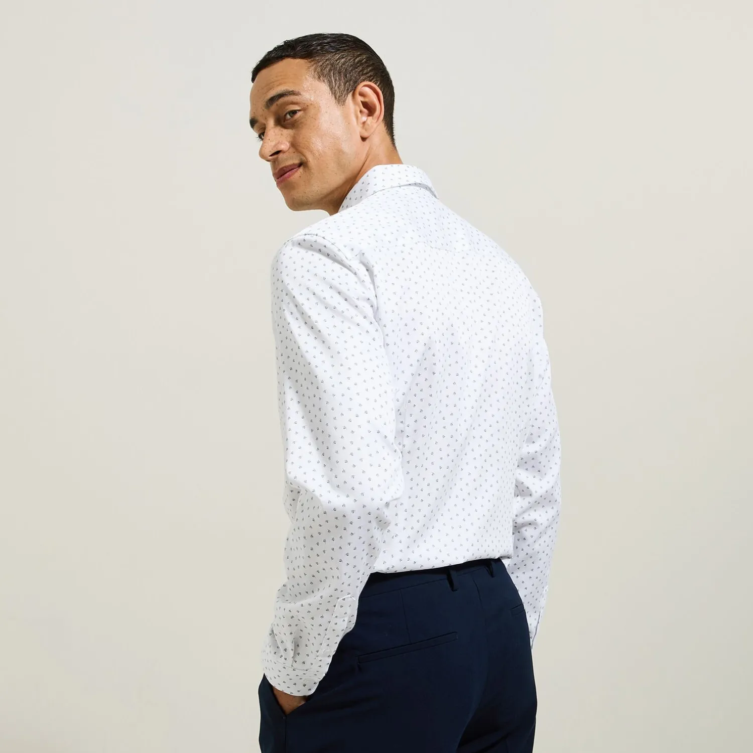 La chemise à manches longues imprimée micro motifs, en coton satin, reste un incontournable du vestiaire masculin, pour un style chic et élégant !