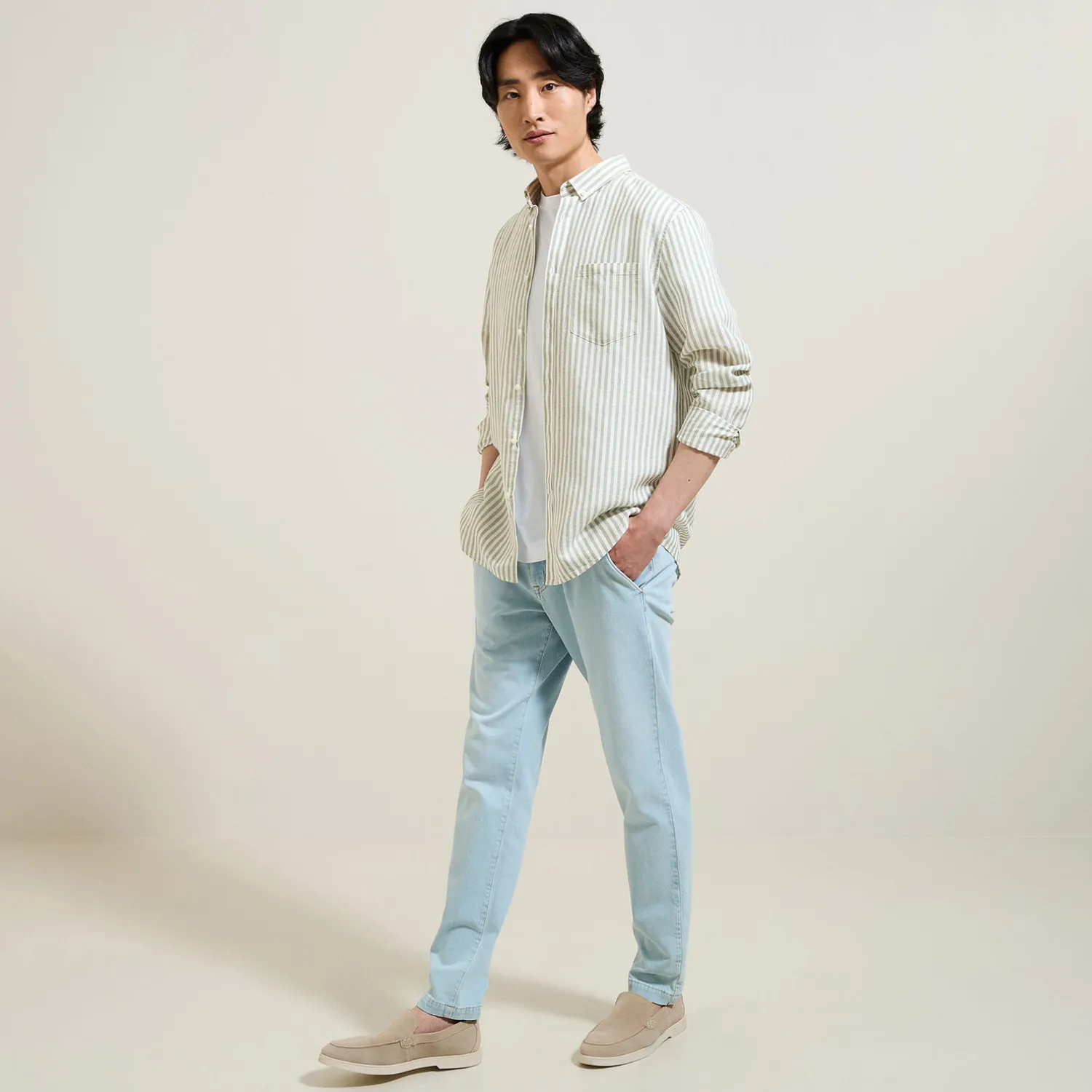 - Coupe regular, ni trop ajustée ni trop large avec un tombé droit
