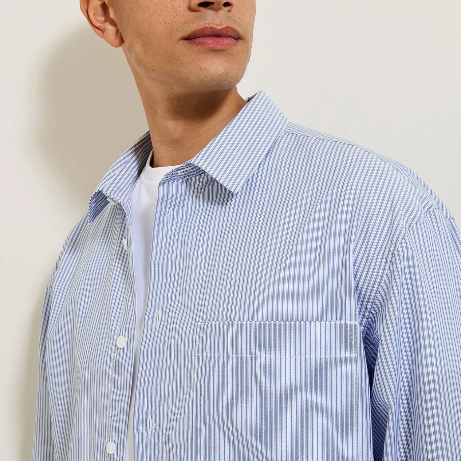 Optez pour le confort et le style avec cette chemise en coton rayée. Fluide et légère, elle offre une liberté de mouvement incomparable.