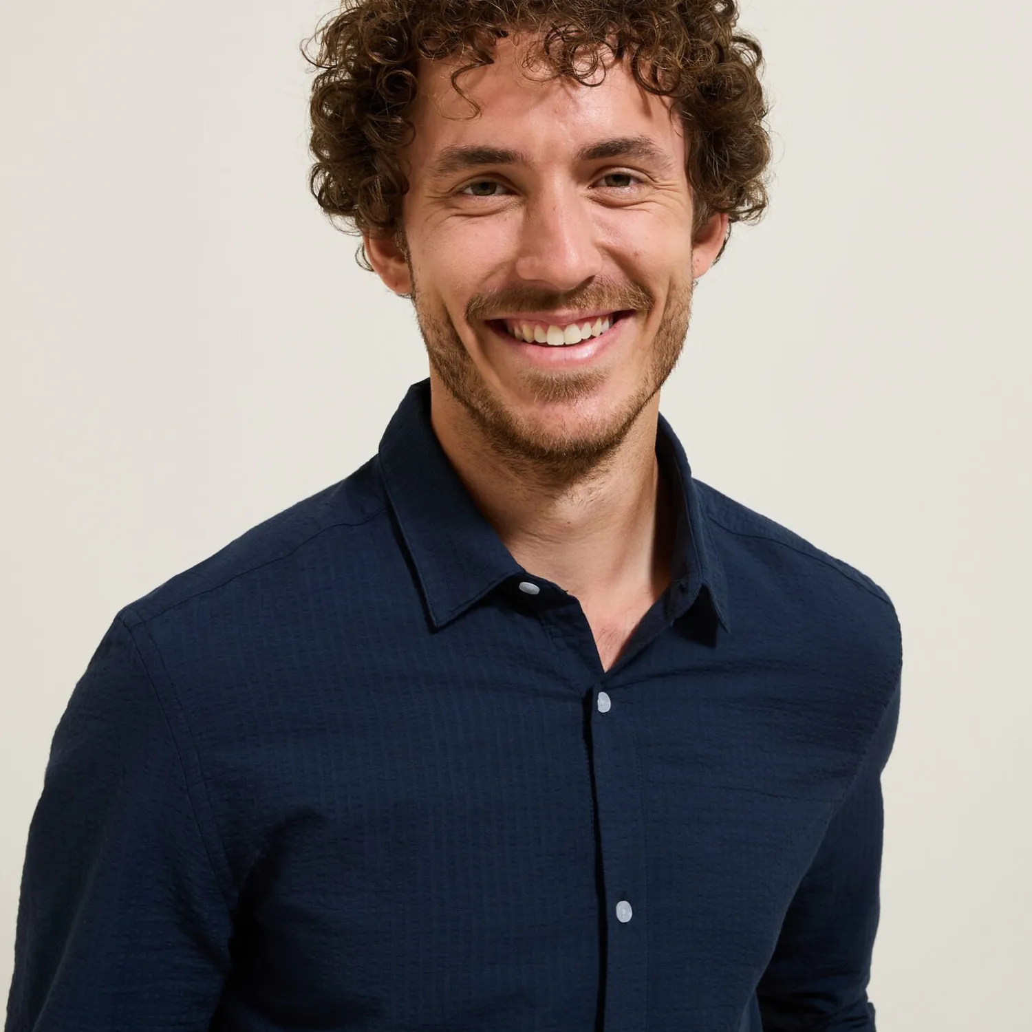 Craquez pour le style décontracté et élégant de cette chemise en coton seersucker rayée. Avec ses manches longues et sa fermeture boutonnée, elle est parfaite pour un look estival réussi.