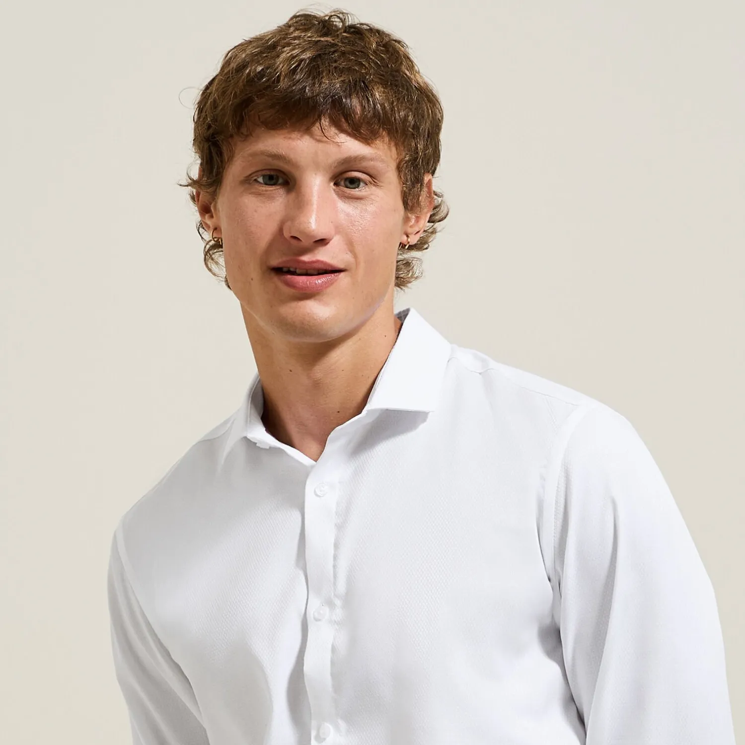 Cette chemise à manches longues en coton, avec motifs en jacquard, s’adapte à toute morphologie et à toutes les situations : Look sportswear décontracté ou urbain plus habillé.