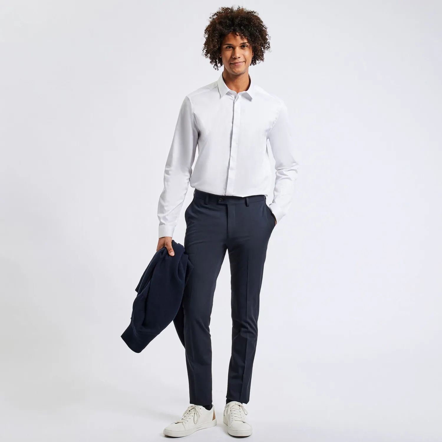 Cette chemise unie est confectionnée en satin de coton qui allie la douceur du coton à l’aspect uni, lisse et brillant de son tissage. Fibre naturelle, le coton est léger et respirant. Elle possède une fermeture boutonnée sous patte, idéale pour les occasions élégantes.