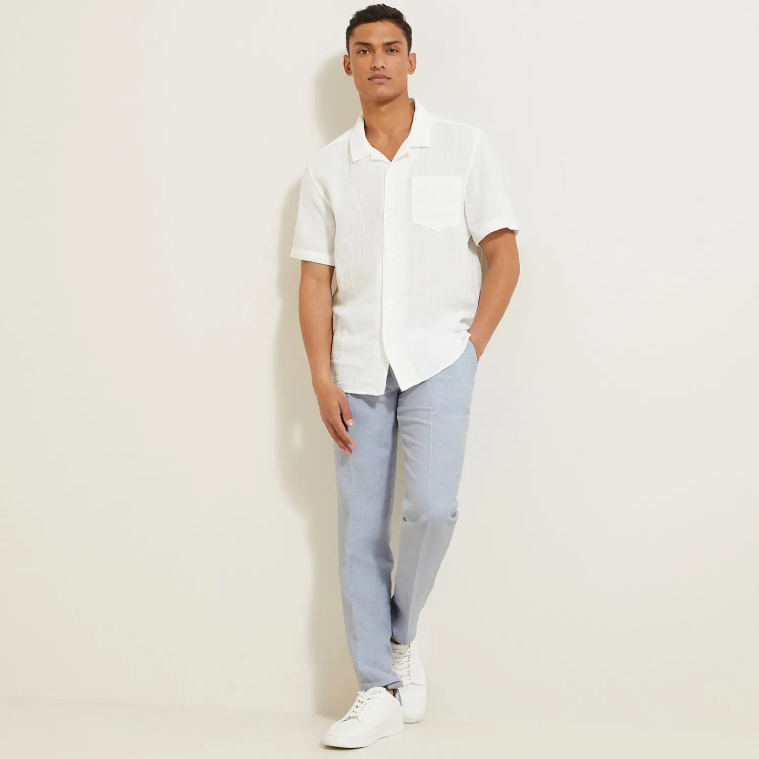 Un pantalon de costume slim, classe et élégant, tout ce qu’il faut pour une tenue chic ! Sa matière principale contient 57% de lin, idéale pour l’été.