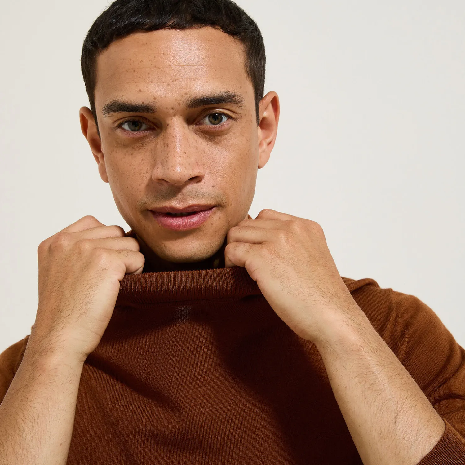 Elégance et confort réunis dans ce pull col roulé en laine mérinos. Sa coupe intemporelle et sa couleur tendance en font un essentiel de votre dressing.