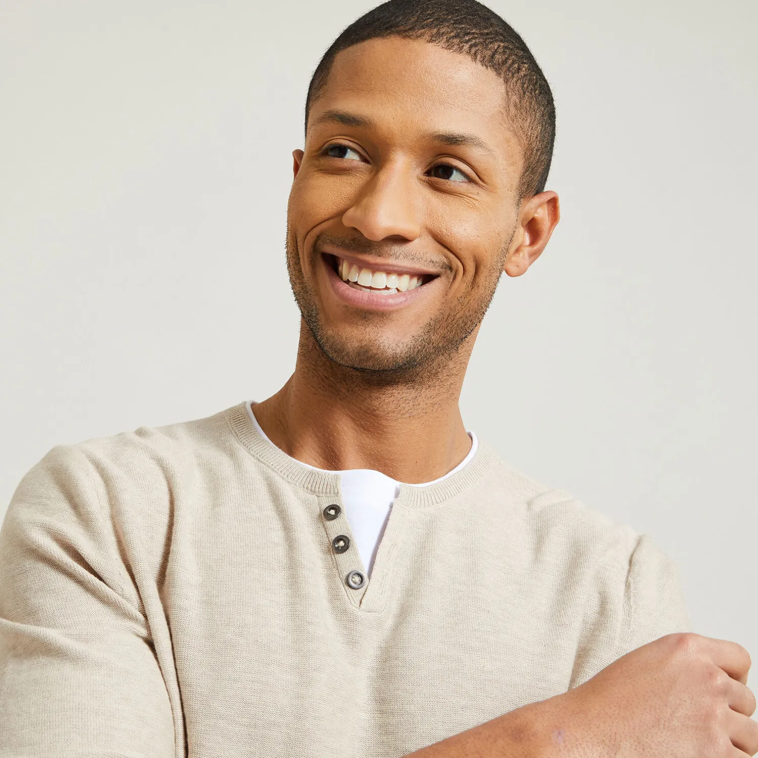 Ce pull à col tunisien doublé de jersey coton se décline dans plusieurs teintes saisonnières ultra tendances.