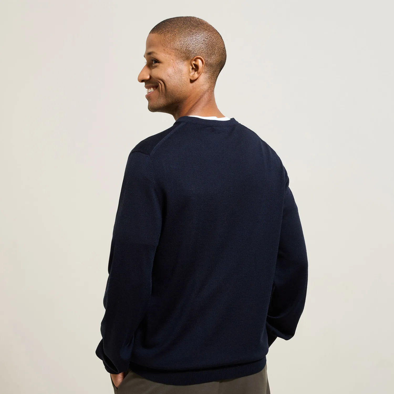 Ce pull en laine mérinos est un incontournable du vestiaire masculin. Sa maille douce et fine apporte du confort au quotidien.