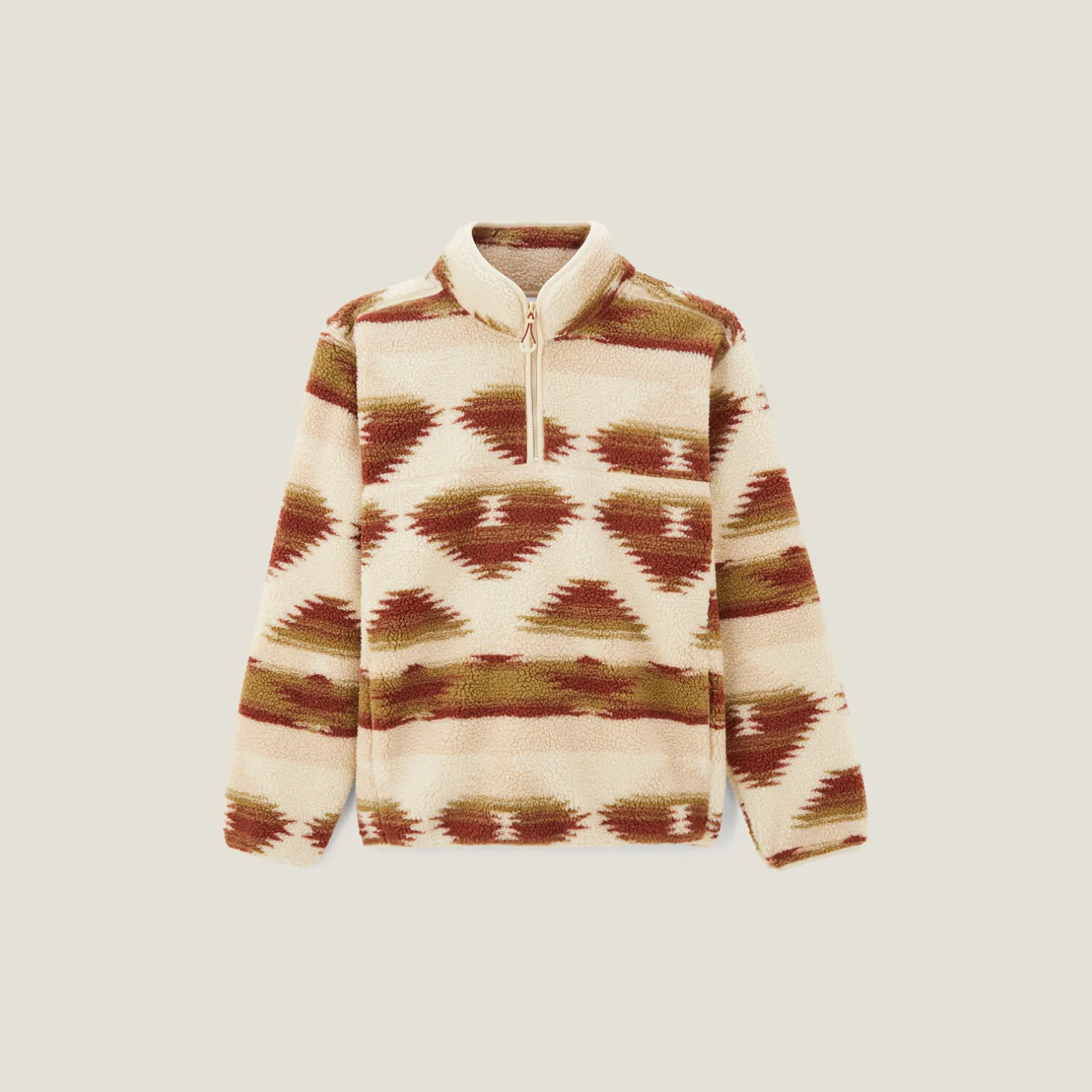 Adopte un look stylé et décontracté avec ce sweat col zippé en sherpa imprimé d’inspiration ethnique.