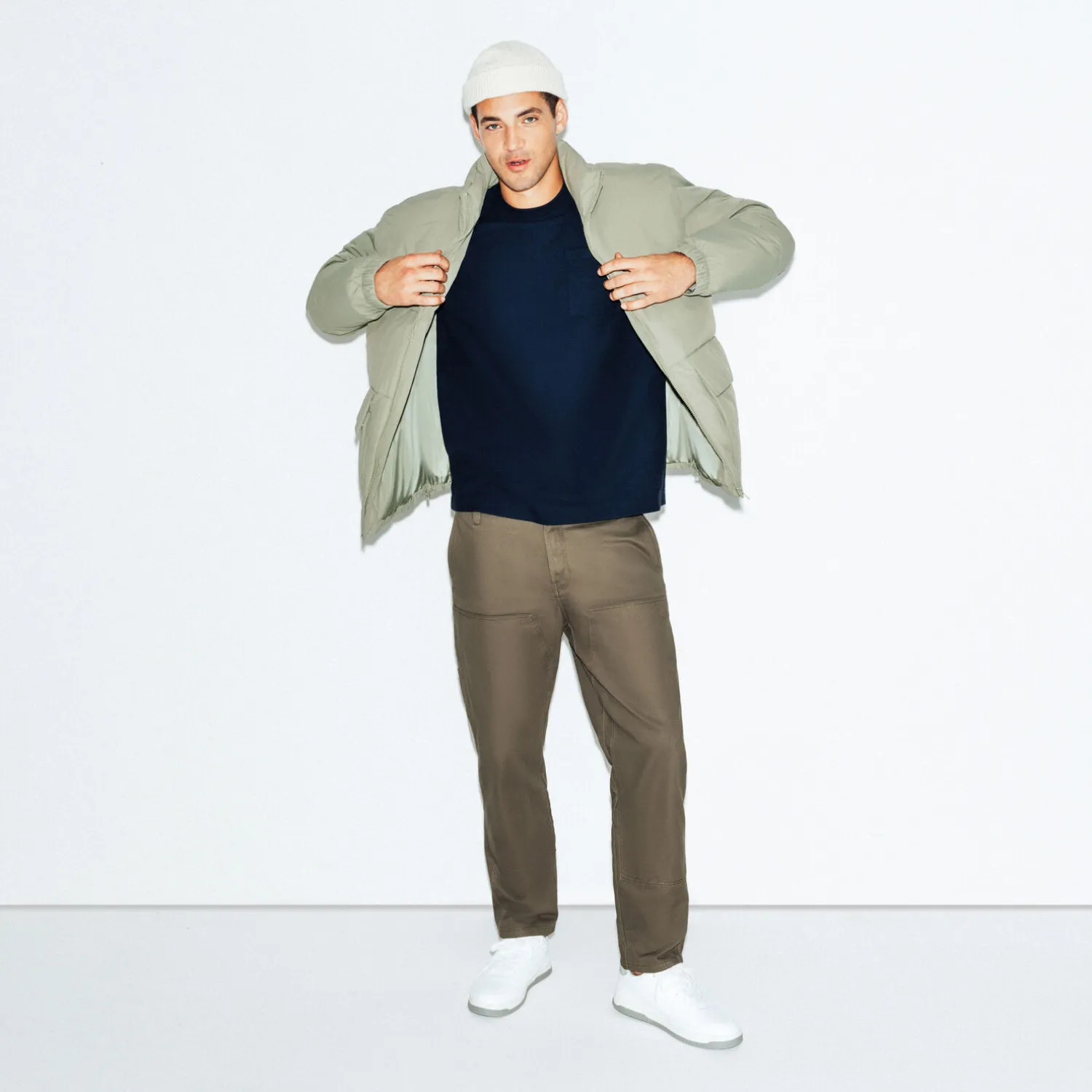 - Une poche poitrine ornée d’une broderie ou d’une étiquette tissée selon le coloris