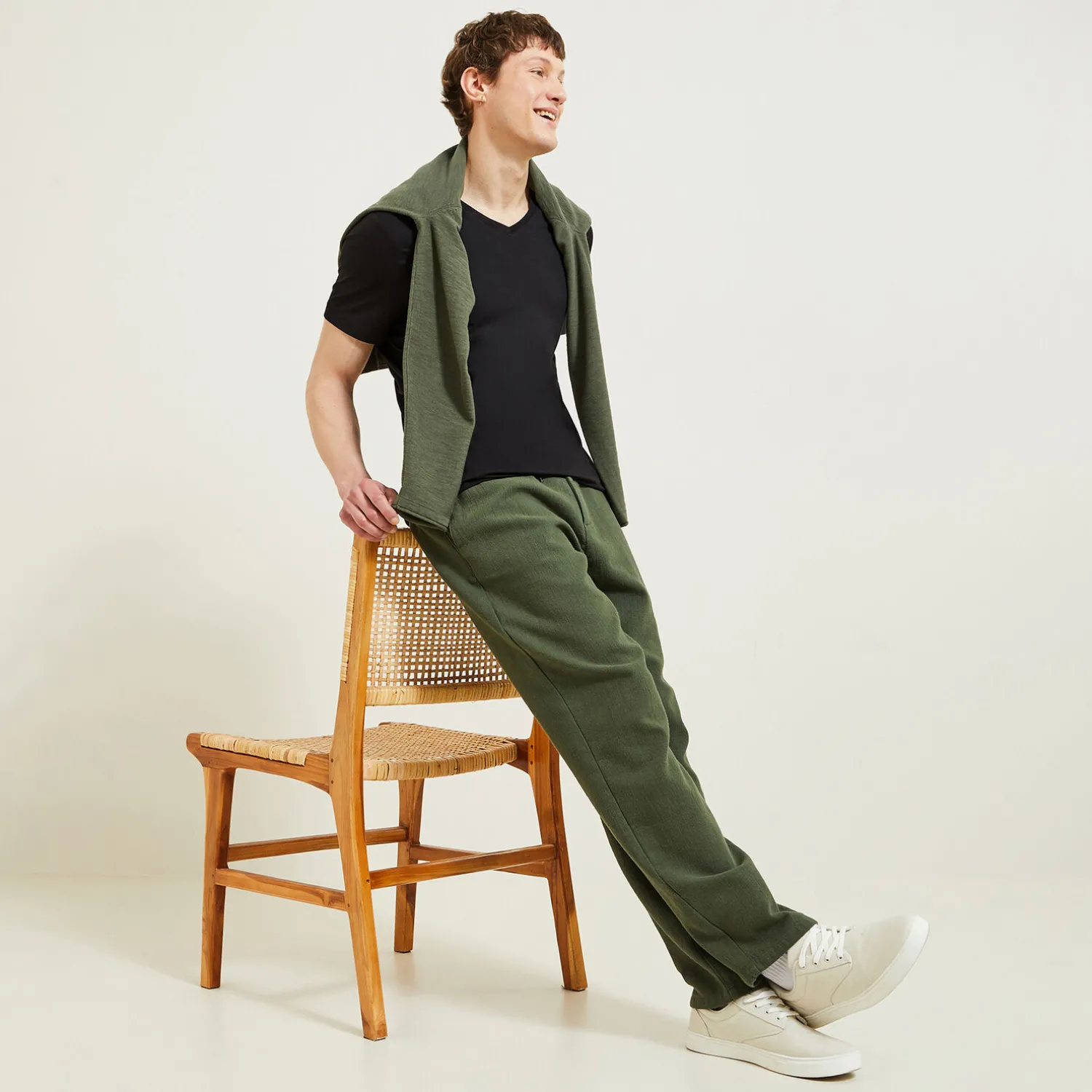 Le mannequin mesure 1m86 et porte une taille L.