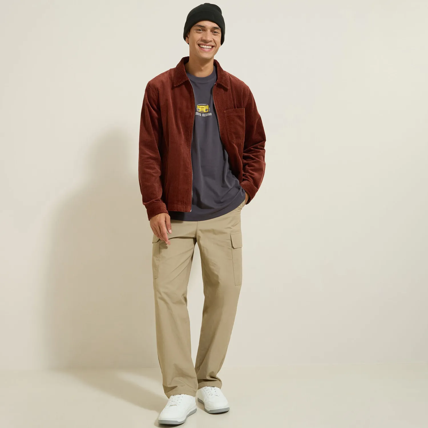 Ce t-shirt imprimé s’associe parfaitement avec un pantalon cargo pour un look décontracté. Pour un style plus urbain, optez pour un jean slim et des baskets.