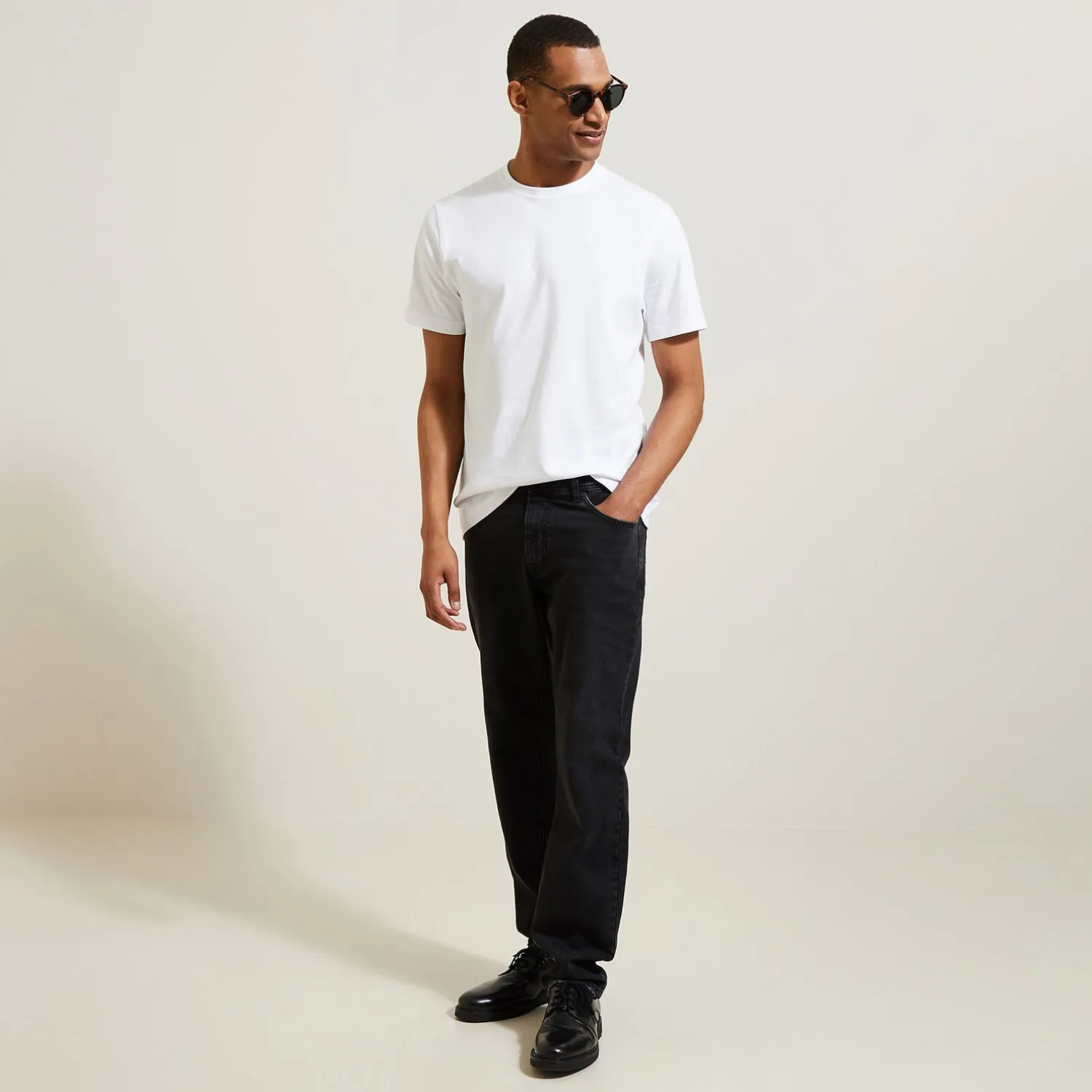 - Coupe regular, ni trop ajustée ni trop large avec un tombé droit