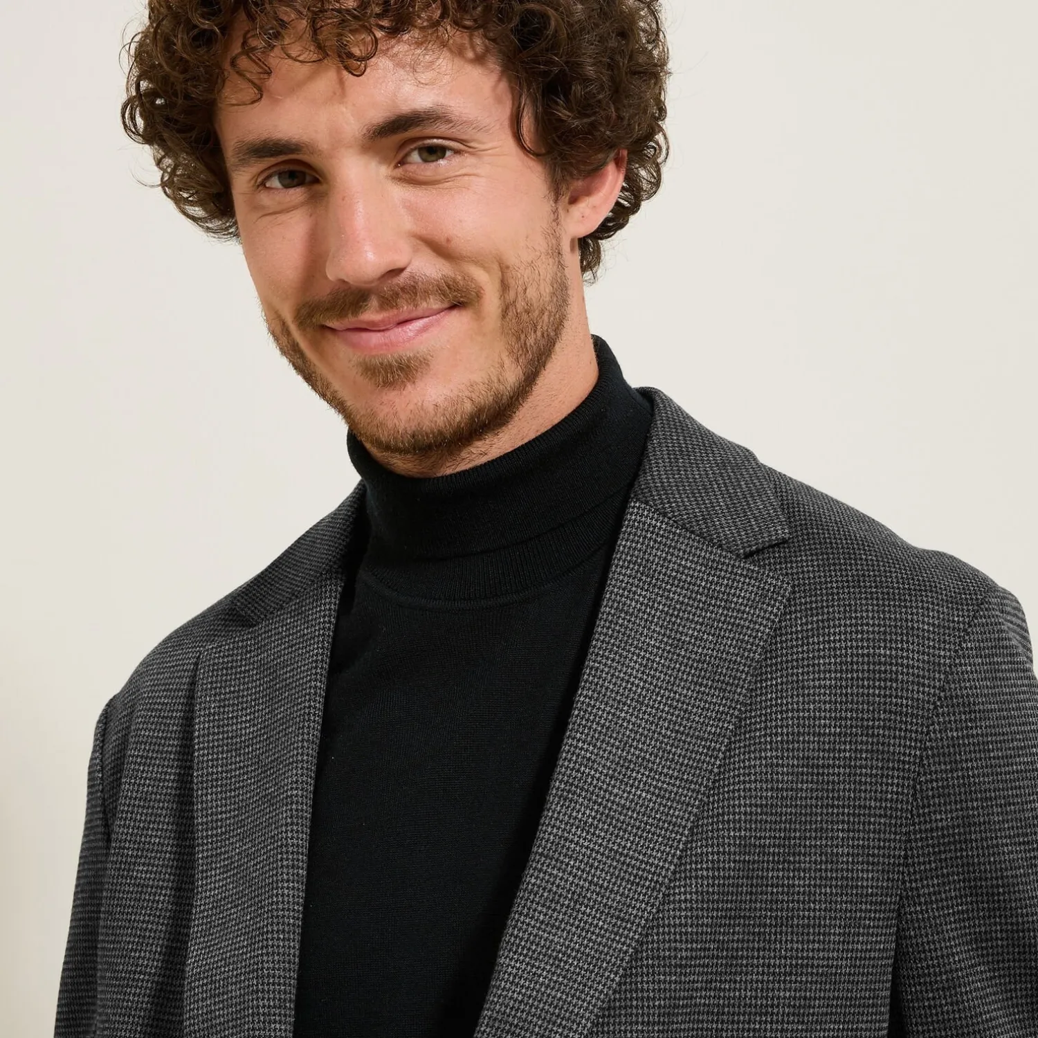 Ce blazer à carreaux ajoutera une touche d’élégance décontractée à votre garde-robe. Son motif pied de puce et sa matière en maille lui confèrent un look moderne et tendance.